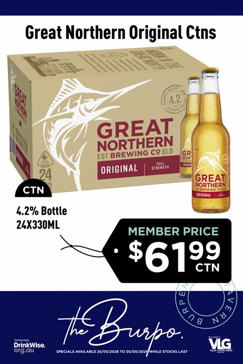 Note: The Burpengary Tavern promotes the responsible service of alcohol. Our bottleshop facilities are not intended for minors or excluded persons.